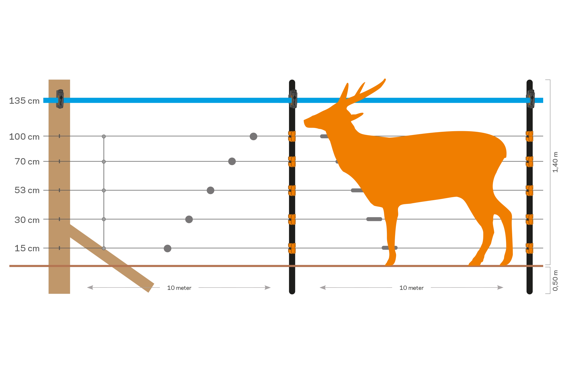 Hægtning til hjorte bruges ikke kun til at holde dine egne hjorte inde, men kan også bruges til at jage hjorte væk. For eksempel for at beskytte dine afgrøder. Når hjorte og råvildt jævnligt vender tilbage, kan de spise dine elskede haveplanter eller afgrøder eller unge skovbeplantninger ned til jorden. Den bedste måde at stoppe disse dyr på er at installere et hegn med elektrisk hegn. Dette hegn skal være højt nok, da hjorte er svære at vende rundt.