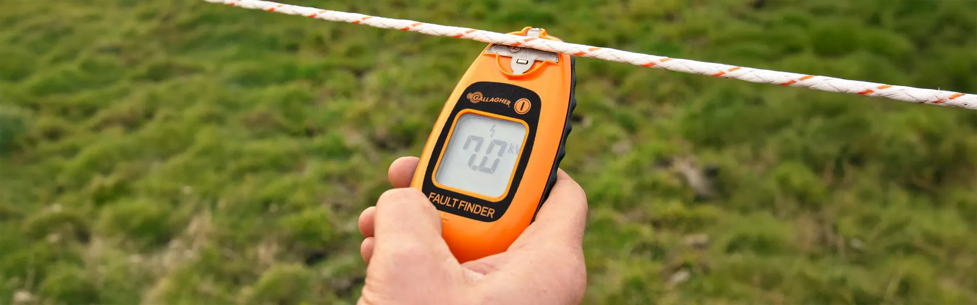 Der Gallagher Fault Finder ist ein unverzichtbares Werkzeug, wenn Sie bei der Wartung von Elektrozäunen Zeit sparen wollen. Dieses All-in-One-Gerät misst Spannung, Stromstärke (Ampere) und erkennt Kurzschlüsse, wobei Pfeile auf dem großen LCD-Display schnell die Fehlerrichtung anzeigen.