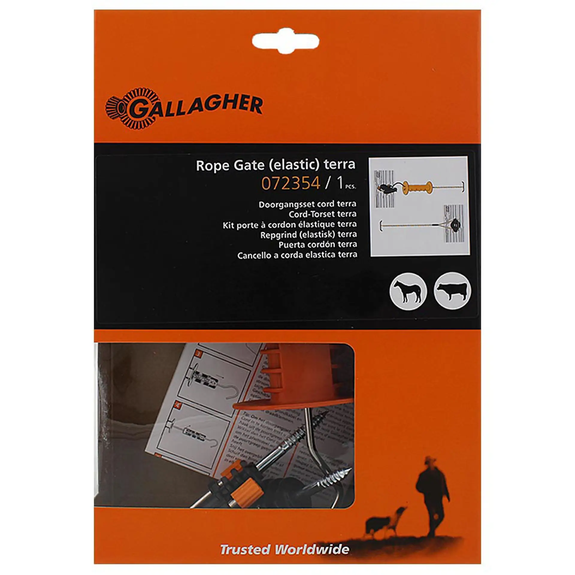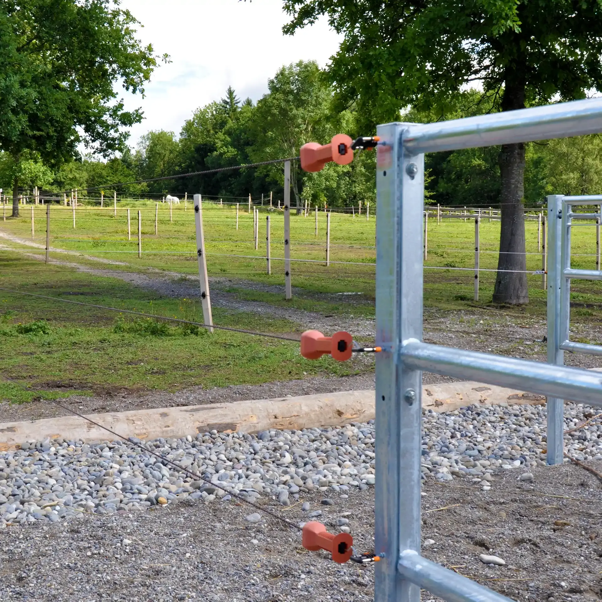 Komplettes Torset (elastisches Cord, terra) zur schnellen und einfachen Einrichtung eines Durchgangs im (Cord- )Zaun. Einfaches Öffnen und Schließen durch Aus- oder Einhängen des Torgriffs aus dem/in den Torgriffanker. Geeignet für Tore von 3 bis 6 Metern Länge.