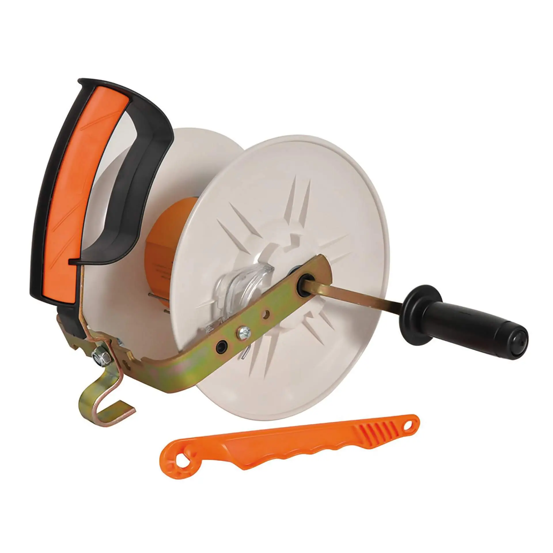 Diese robuste Haspel hat einen besonders großen Innendurchmesser für schnelles Auf- und Abrollen. Geeignet für höchstens 500 Meter Vidoflex, 200 Meter Breitband oder 200 Meter Cord. Die Haspel verfügt über eine Arretierung, eine austauschbare Trommel und einen ergonomischen und robusten Griff. Zur Befestigung an einem Haspeleckpfahl