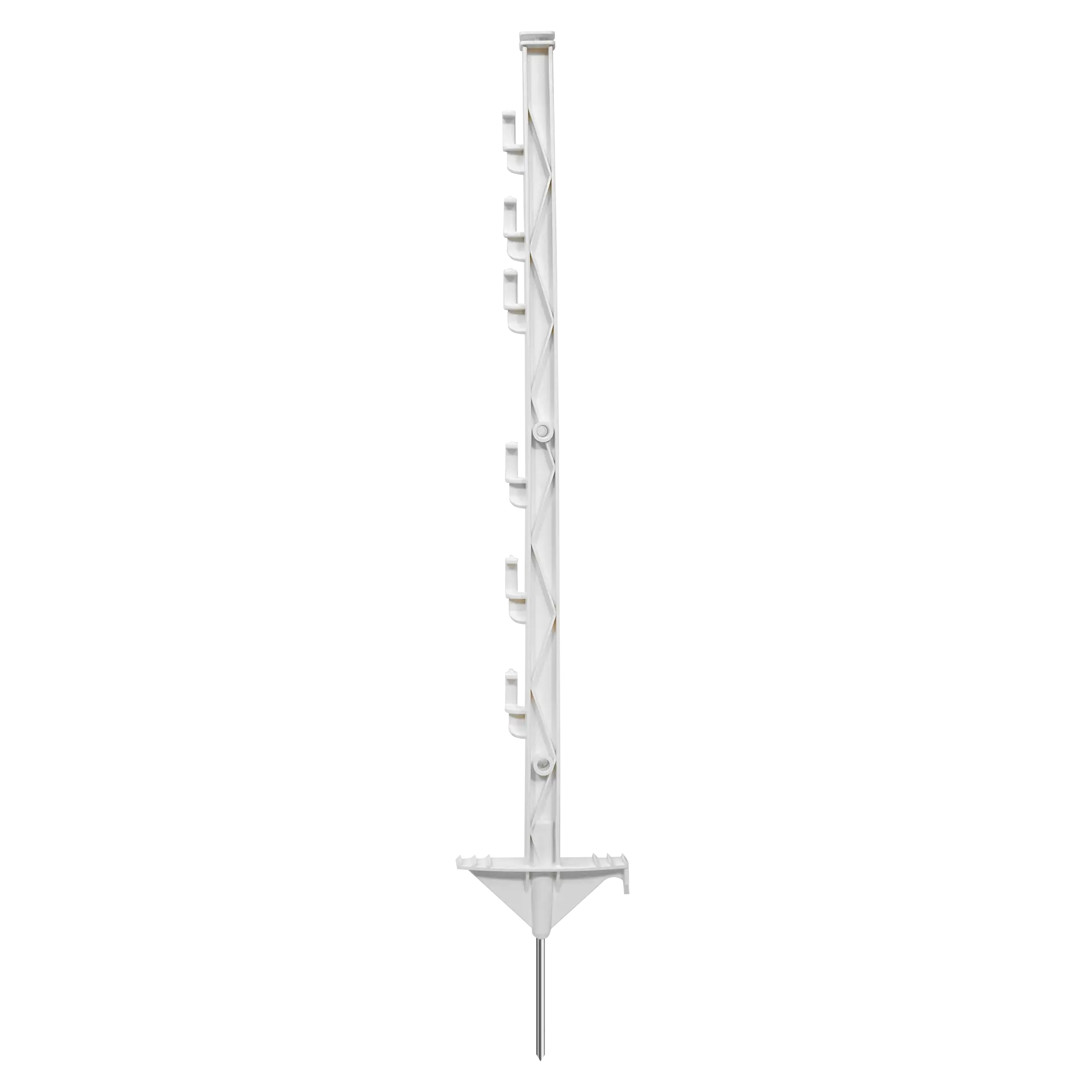 Besonders robuster und langlebiger Kunststoffpfahl mit 6 Drahthaltern und besonders verstärktem Fuß. Geeignet für Cord, Kunststoffdraht und Breitband bis zu 20 mm. Die maximale Zaunhöhe beträgt 0,50 Meter.