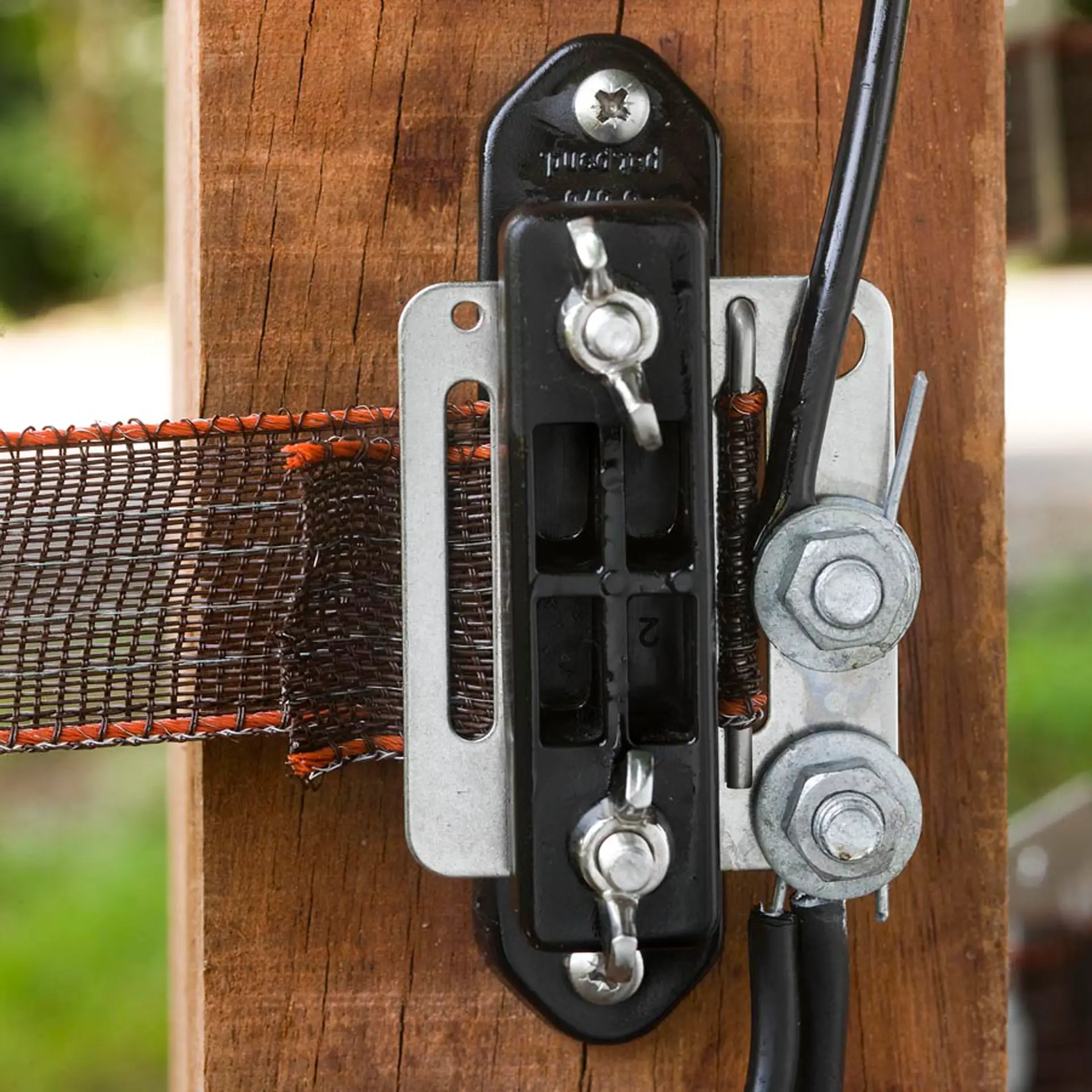 Die TurboLine-Isolatoren können als Zugisolatoren und Eckisolatoren verwendet werden. Sie können an einem Anfangs-/Endpfosten oder Eckpfosten bei einem Festzaun verwendet werden. Da an diesen Stellen mehr Kraft aufgewendet wird, ist es wichtig, diese speziellen Breitbandisolatoren zu verwenden.