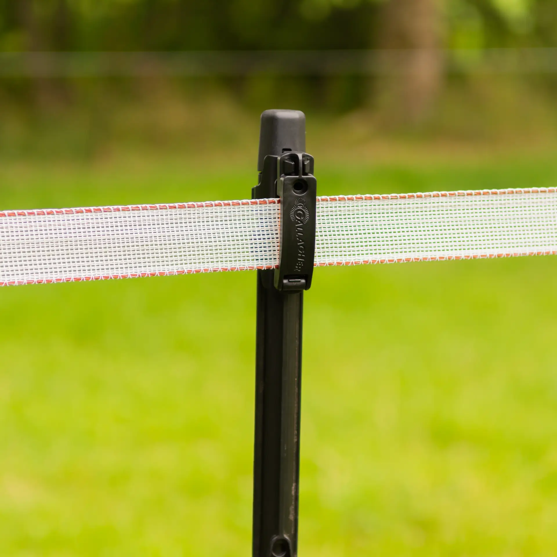 Mit einer Zugfestigkeit von 520 kg ist das Band stark, reisst jedoch an den richtigen Stellen, wenn ein Pferd in Panik durch den Zaun zu fliehen versucht. Hierfür ist es wichtig, robuste Isolatoren und Eckpfähle zu verwenden. Wenn schwache Teile früher brechen als das Band, geht der Sicherheitseffekt verloren. Gallagher bietet daher passende Turbostar-Isolatoren und Zubehör.
