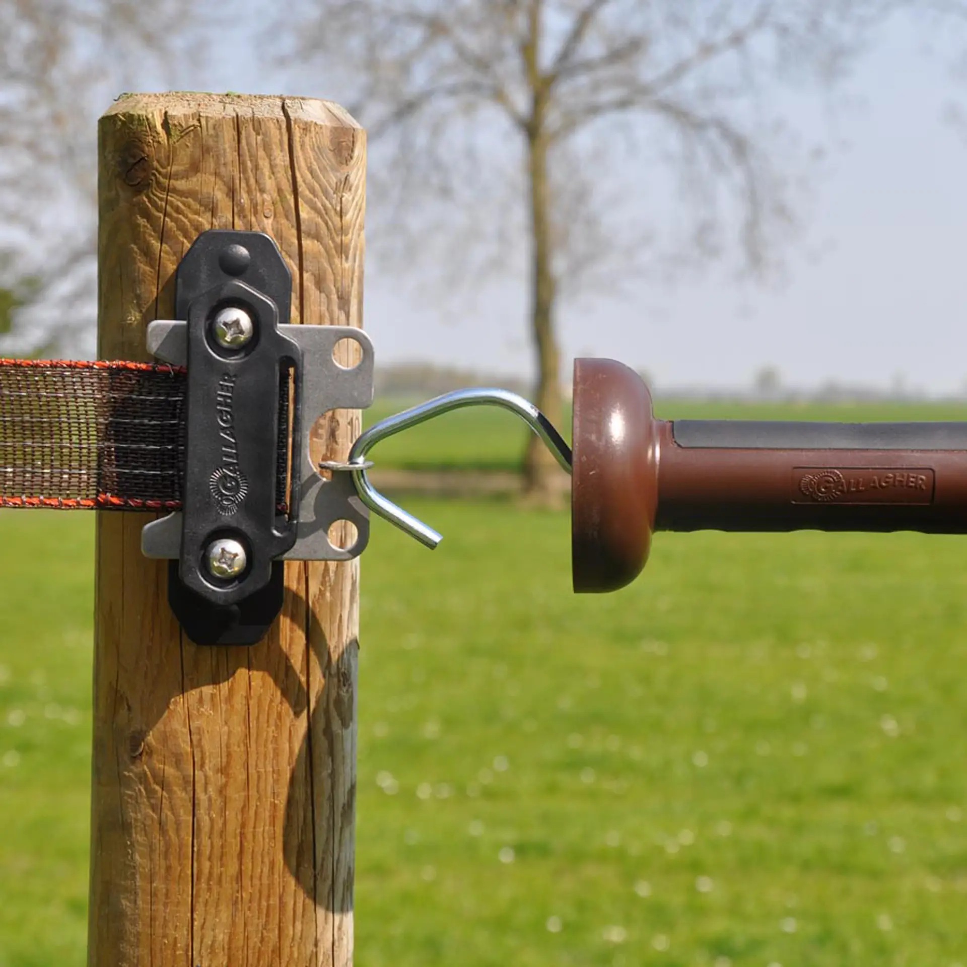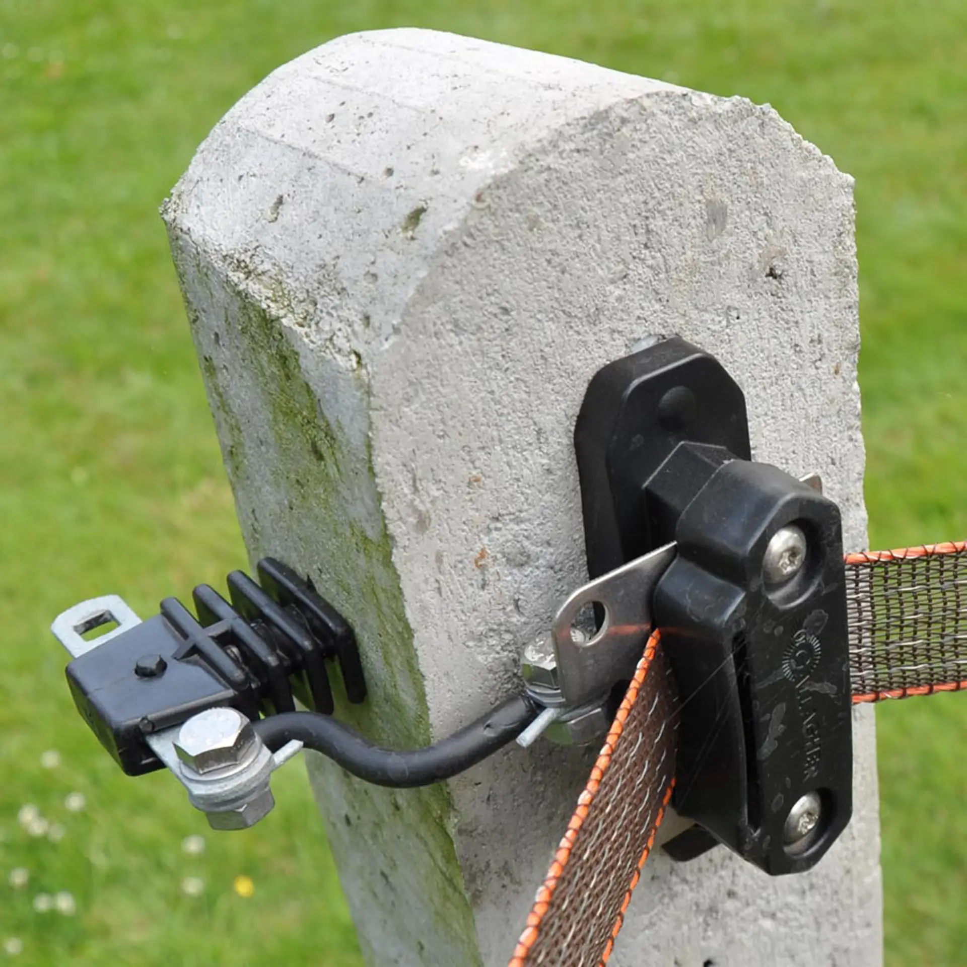 Verbindungsplatte für TurboLine Pferde- Breitbandisolatoren. Dies ist ein Draht zur stromführenden Verbindung zwischen mehreren Reihen Breitbändern kann damit verbunden werden. Die Zwischenplatte kann auch als Torgriffisolator verwendet werden. Für zusätzlichen Anwendungsmöglichkeiten kann der Isolator um 90 Grad gedreht werden. Auf die Verbindungsplatte werden 10 Jahre Garantie gewährt.