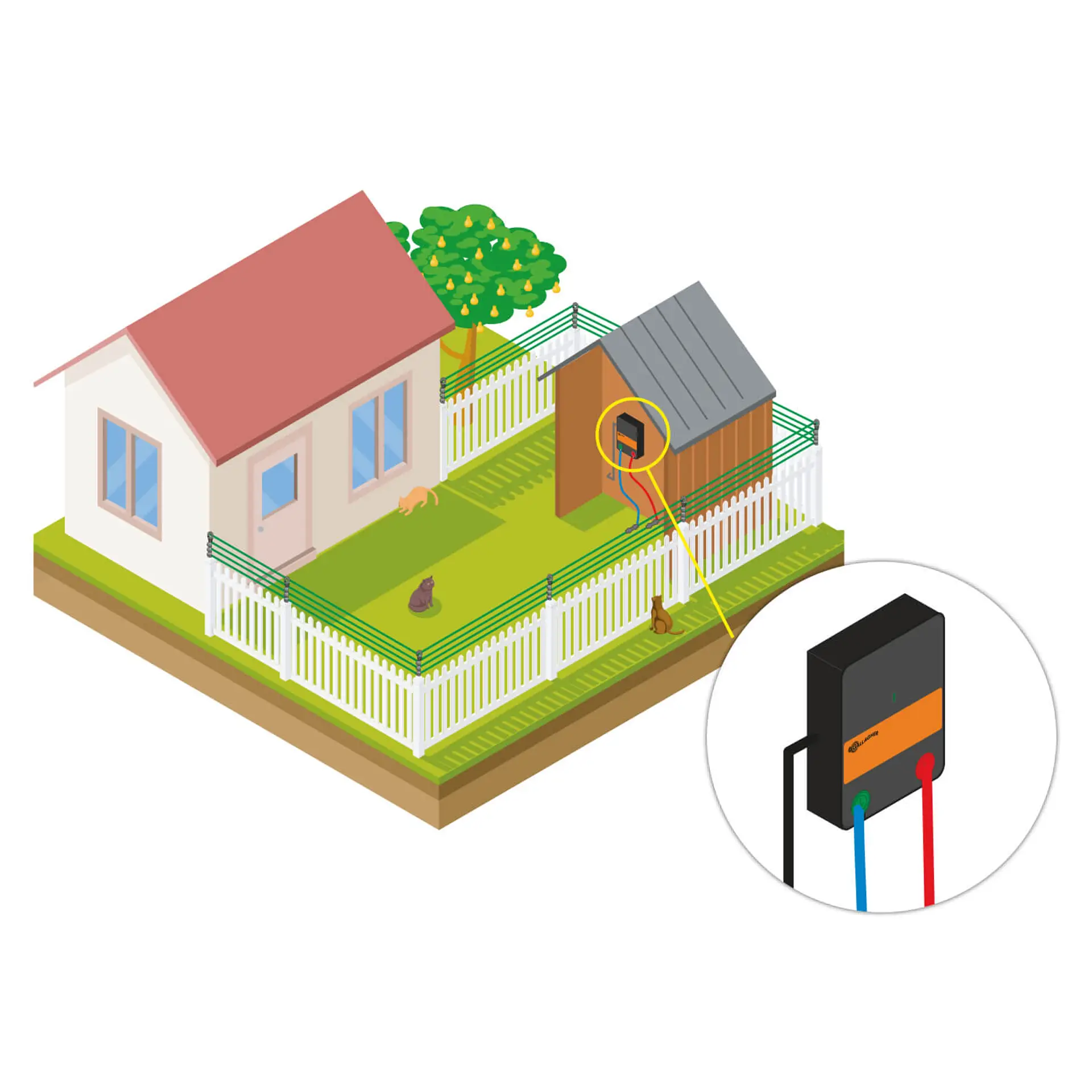 Dieses Zaunset lässt sich mühelos installieren und ist sehr effektiv im Einsatz. Dadurch gelangt Nachbars Katze nicht mehr in Ihren Garten. Das M35 ist ein Weidezaungerät mit Netzstromanschluss.