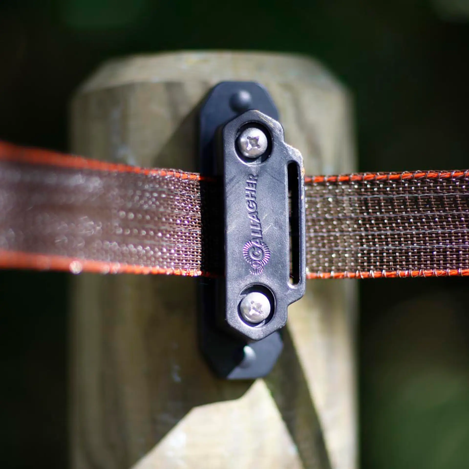 The insulator consists of three parts for extra strength. The part to be attached to the post has three screw holes. The middle one provides extra strength. The second part is clicked over. Then you put the tape in between and screw on the top. The screws are well hidden, so the horse cannot hurt itself. All screws are included. This insulator can be used for tape up to 40 mm.