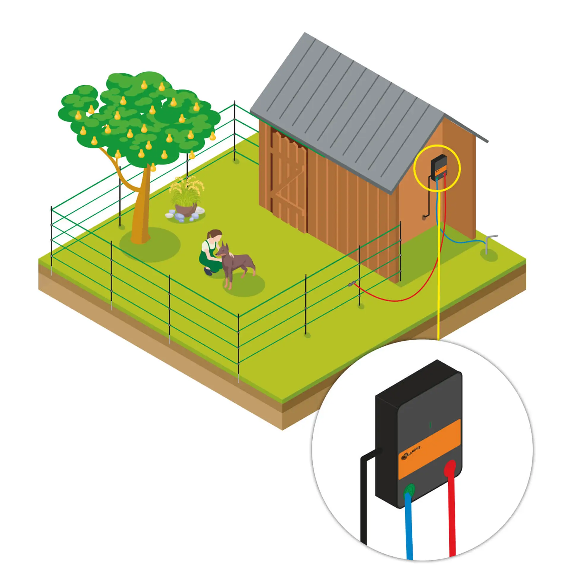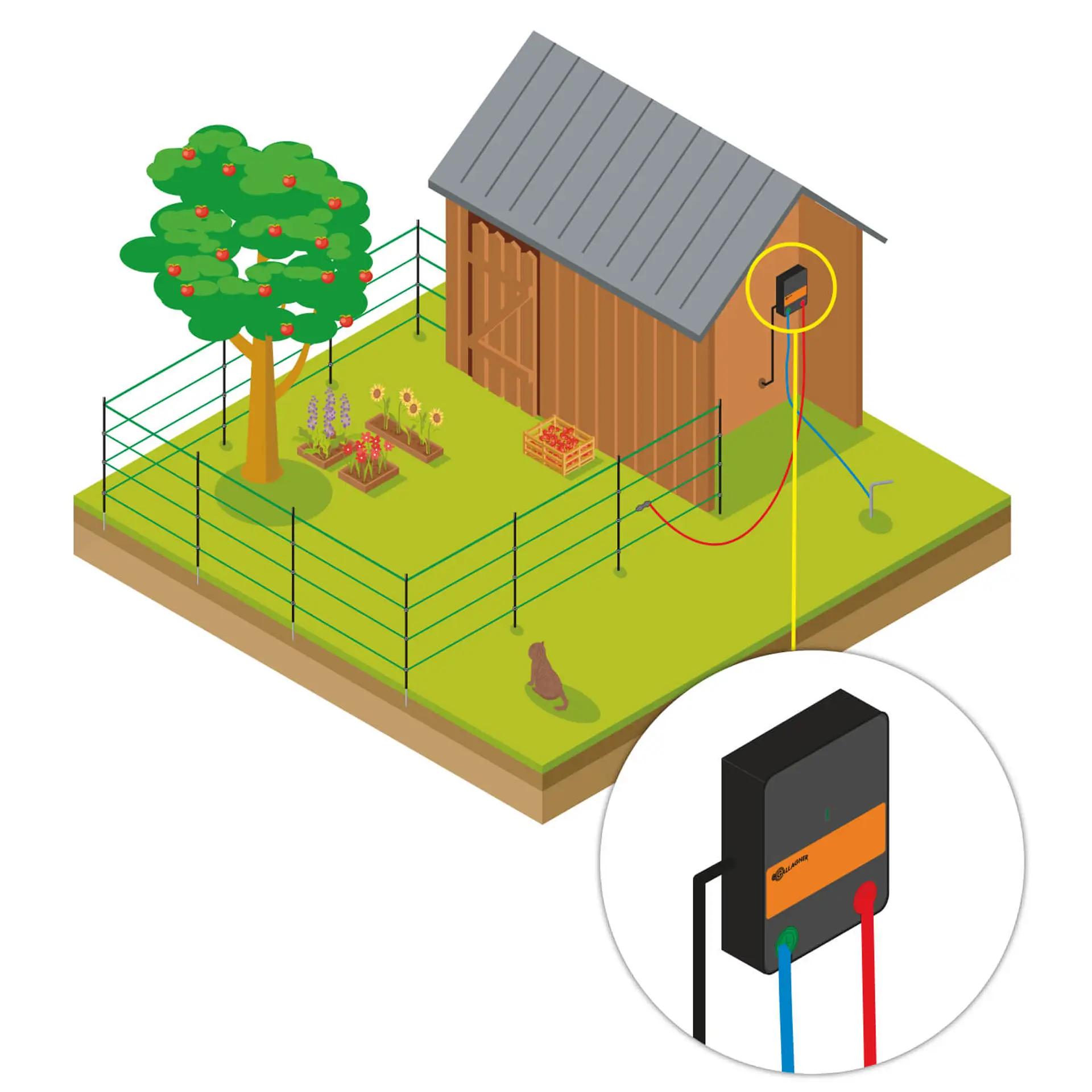 An ideal set for keeping pets out of your own garden or for keeping your neighbours’ pets out. The M35 is a compact, but powerful mains energizer. The fencing posts are 80 cm tall. This kit consists of: M35 (energizer), 100 m plastic wire, 4 wire connectors, 10 (black) fencing posts of 80 cm, 40 wire clips, 8 screw insulators, 1 connection set, 1 earth peg, 1 warning sign (incl. fixing material), 1 assembly set and a manual.
