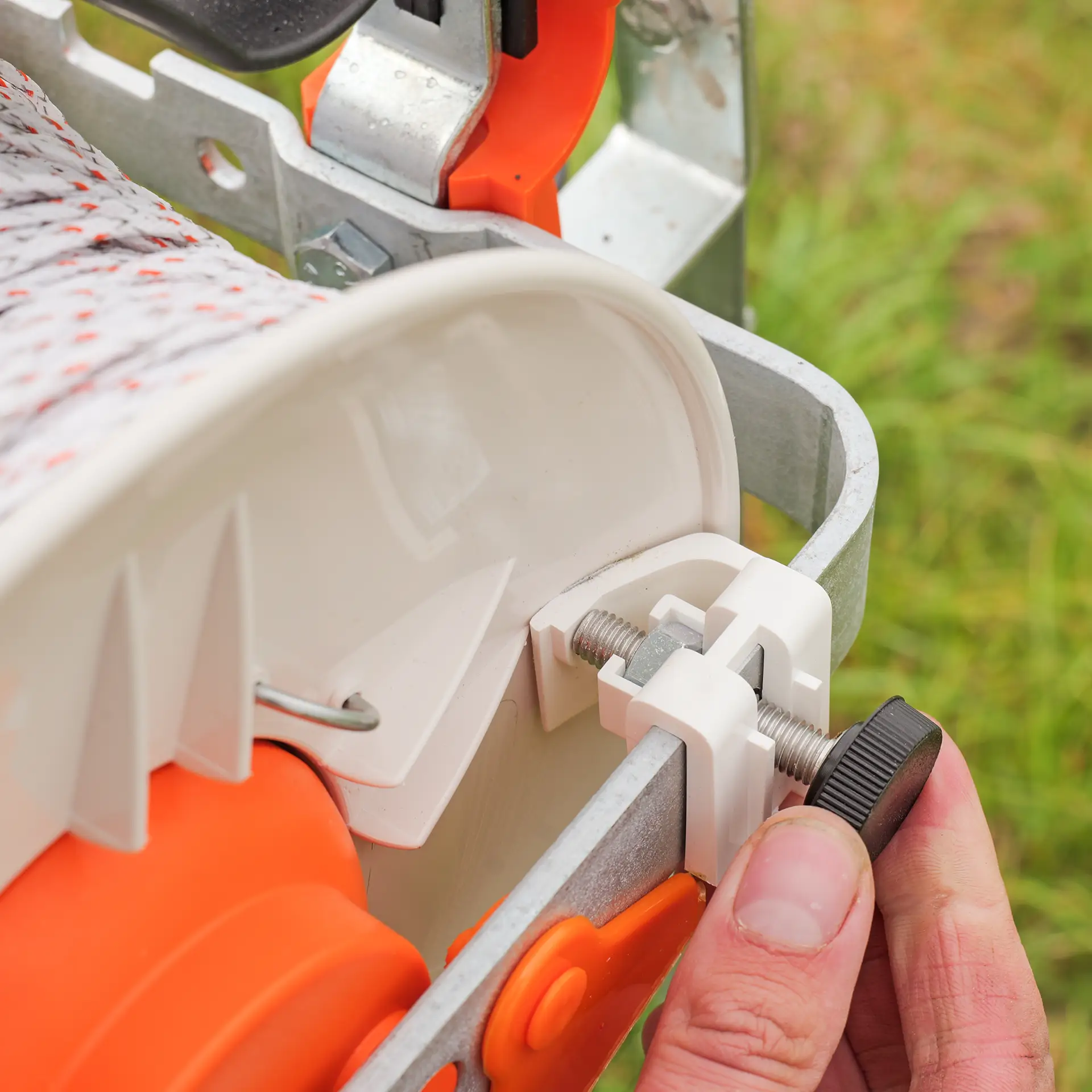 For extra stability, support legs can be attached to the bottom. These are not included with the reel angle post and should be purchased separately. Especially when a large amount of wire is rolled out, support legs are desired.