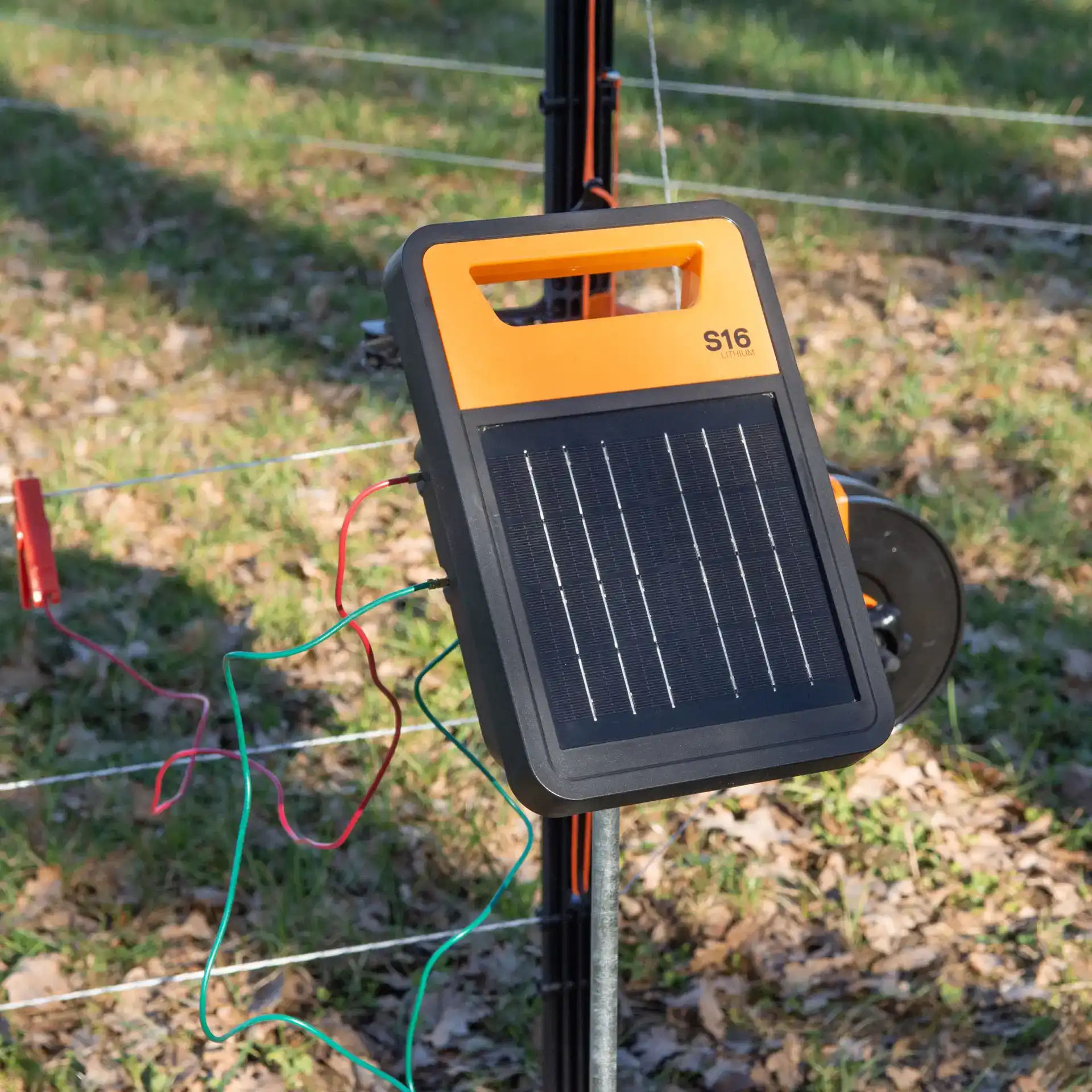 The Gallagher S16li is an innovative solar-powered electric fence energiser. Thanks to its built-in lithium battery, this device is 30% lighter and more compact than comparable models, making it not only more portable but also more powerful and reliable. The S16li delivers a voltage of 8 kV and, with a power of 0.16 joules, is suitable for fences up to 1.5 km.