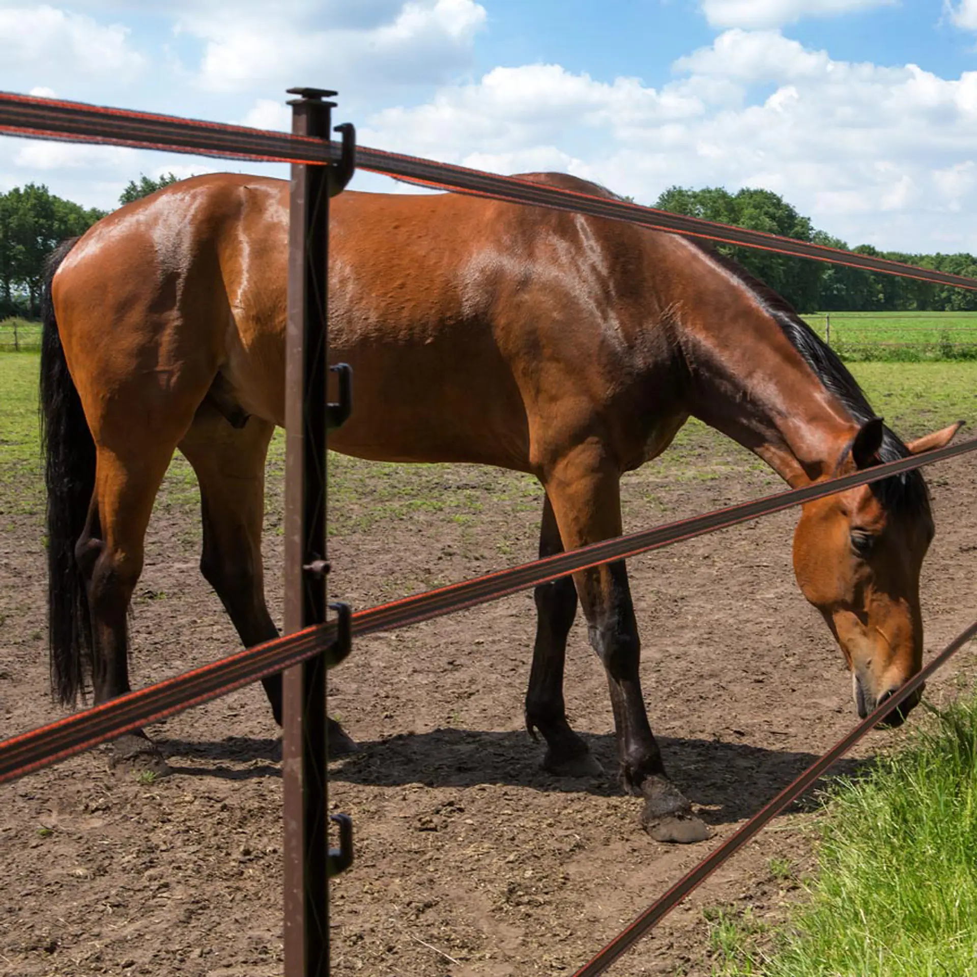 The Turboline 20 mm tape is additionally reinforced with a lace wire at the top and bottom. This reduces the risk of tearing when damaged and provides less stretch, ensuring the tape remains taut longer when tensioned and requires less maintenance. A tensioned Tape is less sensitive to wind and exerts the least load on the posts and insulators.
