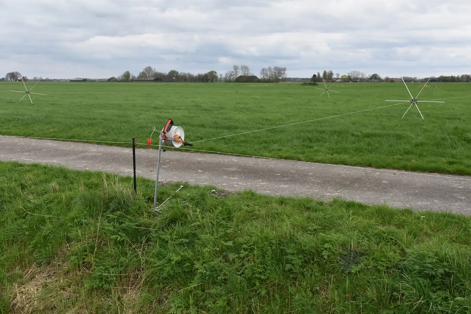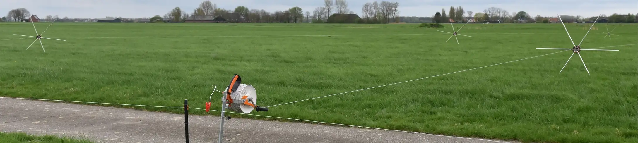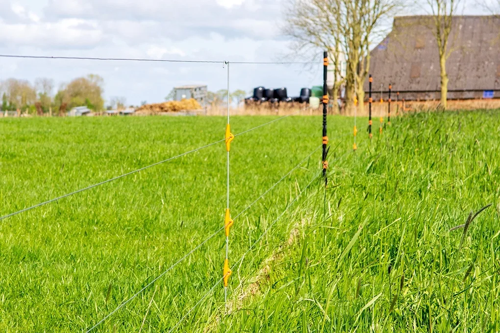 Si vous souhaitez adapter la taille de la parcelle à la croissance de l'herbe, une clôture permanente combinée à des fils mobiles peut être une solution. Les repousses peuvent également être mieux protégées de cette manière. La clôture permanente constituée de fils lisses et de piquets Line Post forme la base le long du chemin des vaches. Des fils mobiles sont ensuite installés à partir du chemin des vaches, définissant ainsi la taille de la parcelle. Grâce à la poignée isolée multifonction, vous pouvez décider si le courant doit être passé ou non. Cette poignée est différente d'une poignée de portail standard. En utilisant un enrouleur, vous montez et descendez le fil facilement et rapidement.