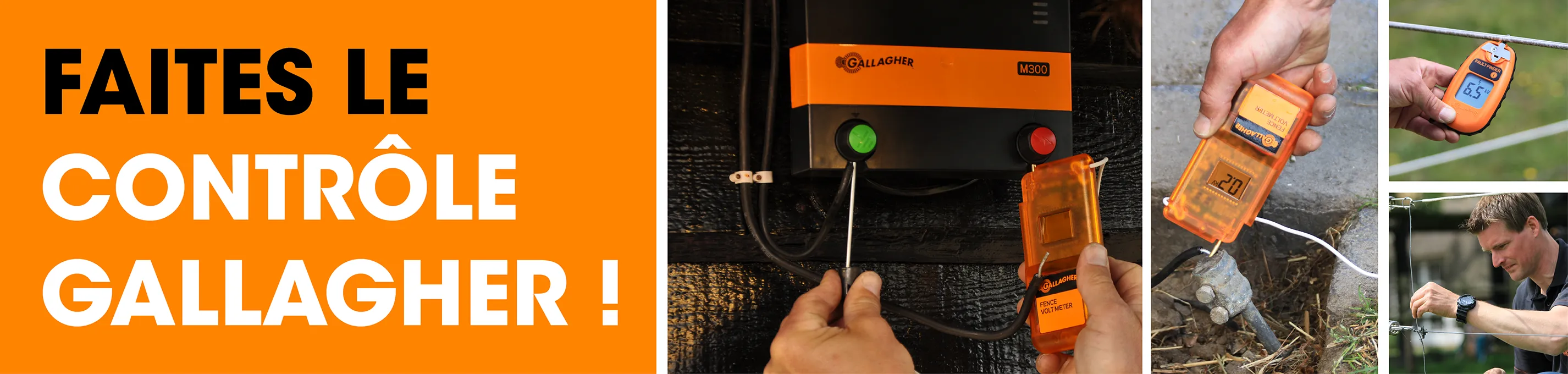 Chez Gallagher, la sécurité de vos animaux passe avant tout. Cela commence par le développement des produits les plus sûrs possible. Mais comme le dit le proverbe, de bons outils ne représentent que la moitié de la bataille. L'autre moitié du travail réside dans une installation et un entretien corrects. Pour l'entretien, vous ne devez pas nécessairement être un spécialiste. Gallagher a développé le Contrôle Gallagher spécialement à cet effet. Grâce à ce contrôle étape par étape, vous pouvez vérifier vous-même votre clôture et être sûr que vous avez tout fait pour offrir à vos animaux le pâturage le plus sûr possible.