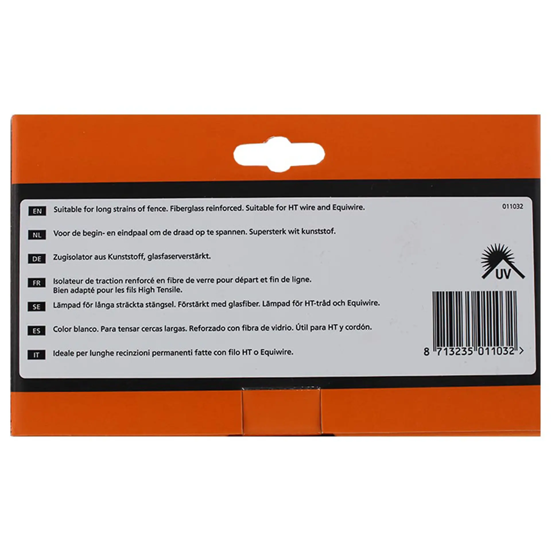 Isolateur de traction renforcé pour départ et fin de ligne, pour fil High Tensile 2,5mm. Matériel : polycarbonate super résistant. Disponible en blanc ou noir.