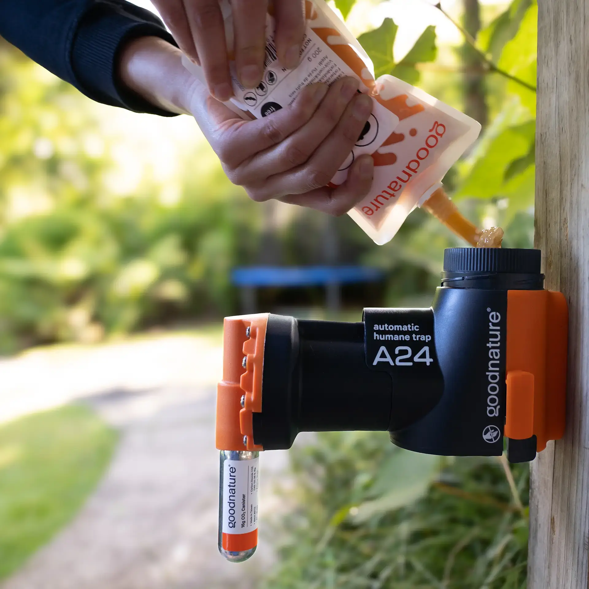 L'esca pre-alimentazione Goodnature® incoraggia ratti e topi a dirigersi verso la trappola piuttosto che verso fonti di cibo concorrenti. Questo rende la trappola irresistibile quando i ratti o i topi si avvicinano per ispezionarla. Le nostre esche sono prive di veleno, quindi non c'è rischio di avvelenamento secondario.