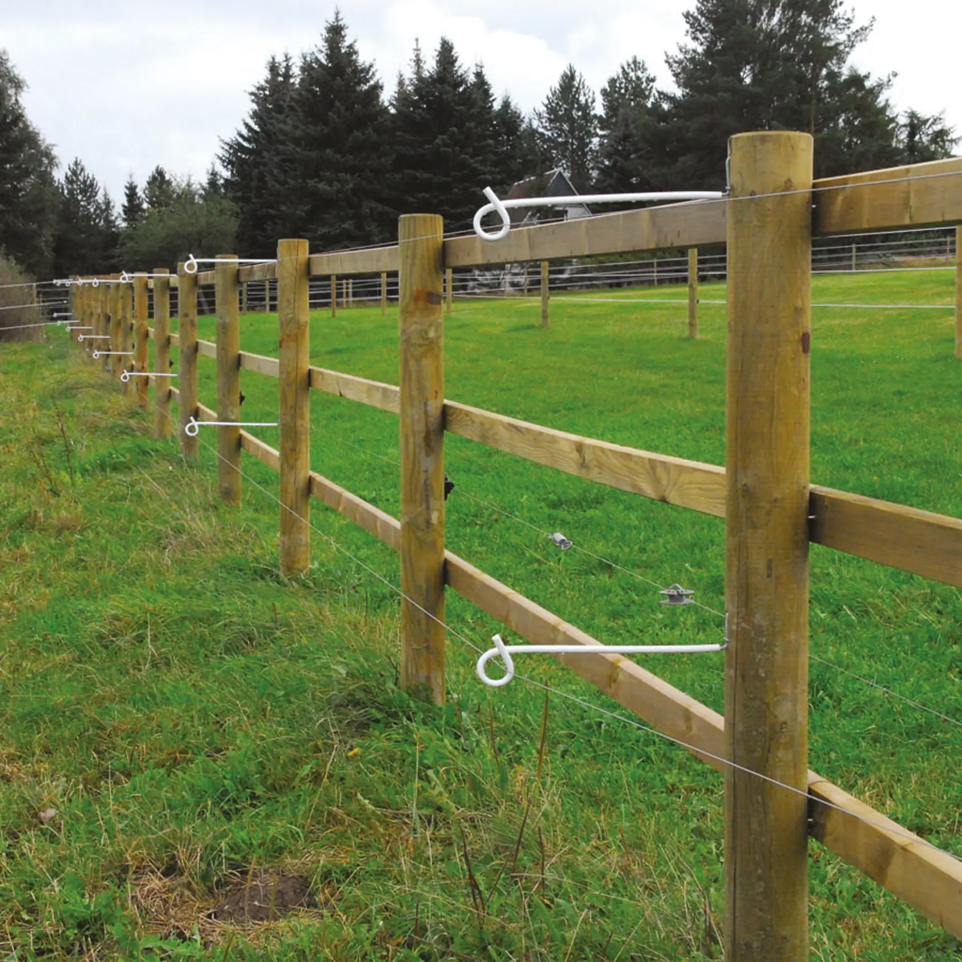 Afstandisolator voor houten palen, geschikt voor lint en cord. Voor het snel en doeltreffend elektrificeren van niet- elektrische afrasteringen. De productgarantie op deze afstandisolator is 2 jaar