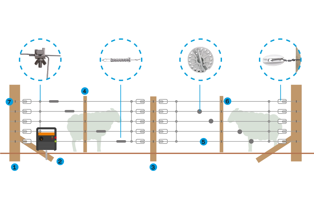 Een goede stroomgeleider, zoals High Tensile draad, gecombineerd met een krachtig schrikdraadapparaat van Gallagher, biedt u de zekerheid die u wenst. De onderste draad van een schapenafrastering ligt dicht bij de grond, waardoor de kans groot is dat vegetatie de draad raakt. Daarom heeft u een krachtig schrikdraadapparaat van Gallagher nodig, want zodra het wordt aangeraakt, schroeit het het gras. Als gevolg hiervan zal er voldoende stroom op uw afrastering staan. Een High Tensile afrastering, gecombineerd met een Gallagher schrikdraadapparaat, vormt de perfecte barrière om schapen veilig in een wei te houden. Het zal nog vele jaren goed werken.