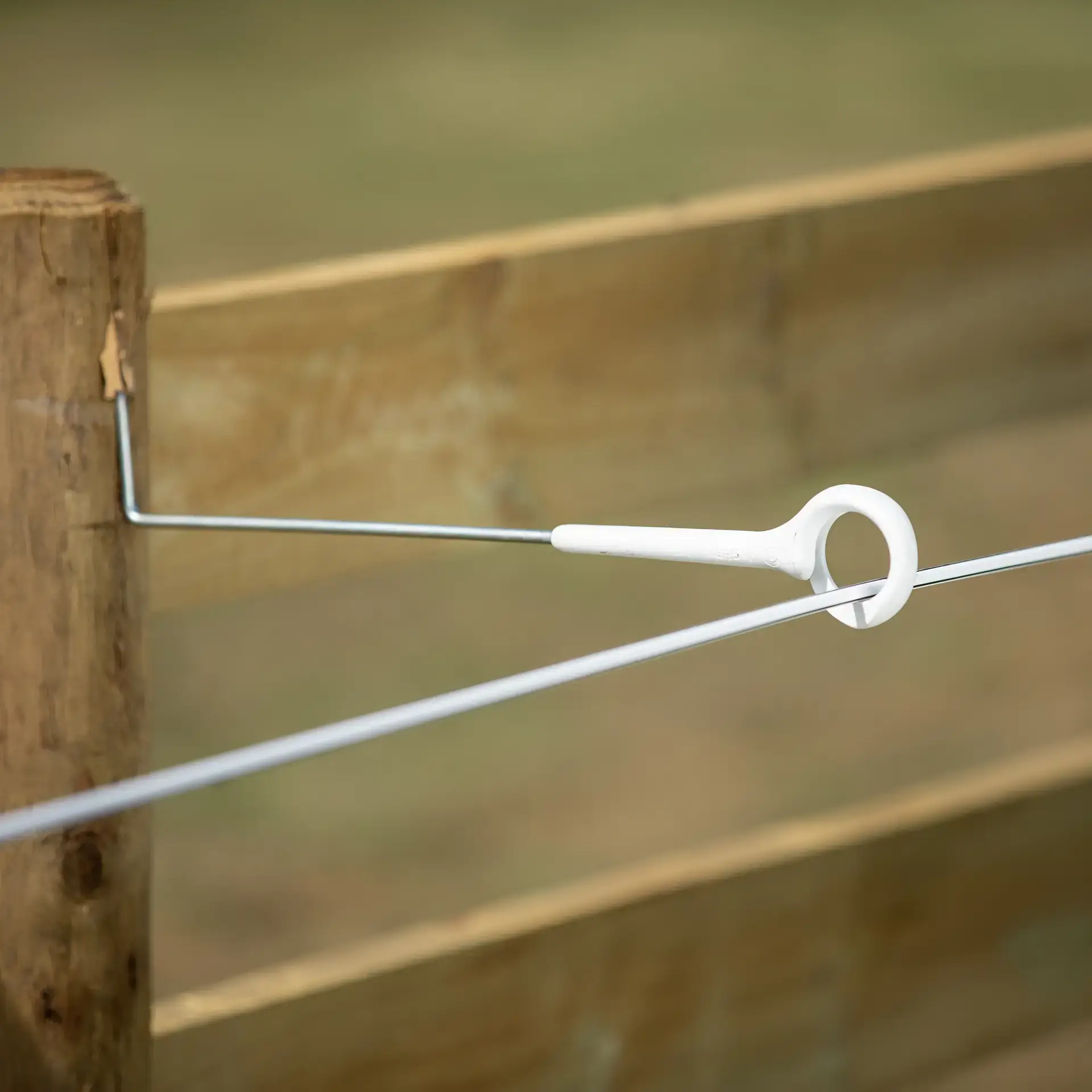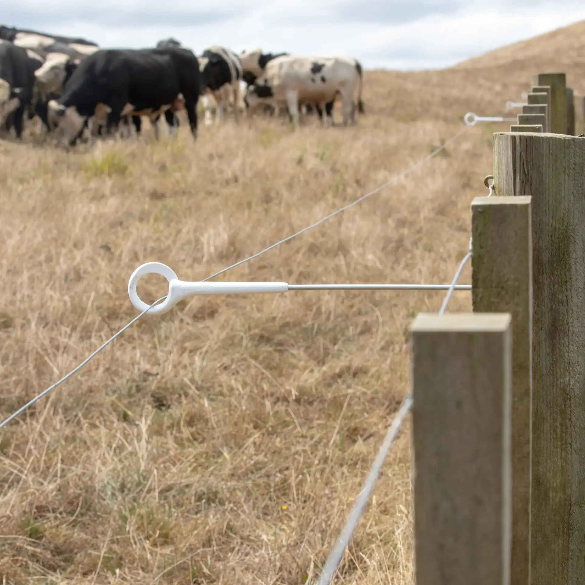 Deze afstandisolator met een lengte van 40 cm is geschikt voor draad, lint en cord en kan worden gebruikt voor het elektrificeren van niet- elektrische afrasteringen. Dit vormt voor een extra barrière en beschermt het hekwerk tegen beschadiging. De gepatenteerde ring top is extreem slijtvast en bevat geen metalen kern die kortsluiting kan creëren. Doordat de ring top geen uitstekende delen heeft is het kans op dierletsel minimaal.